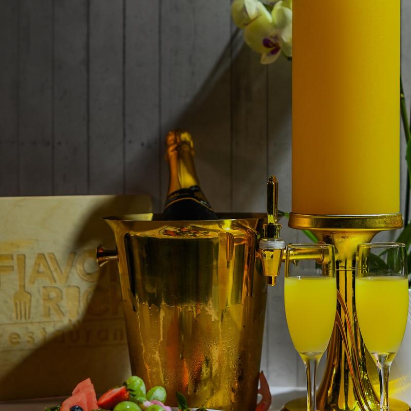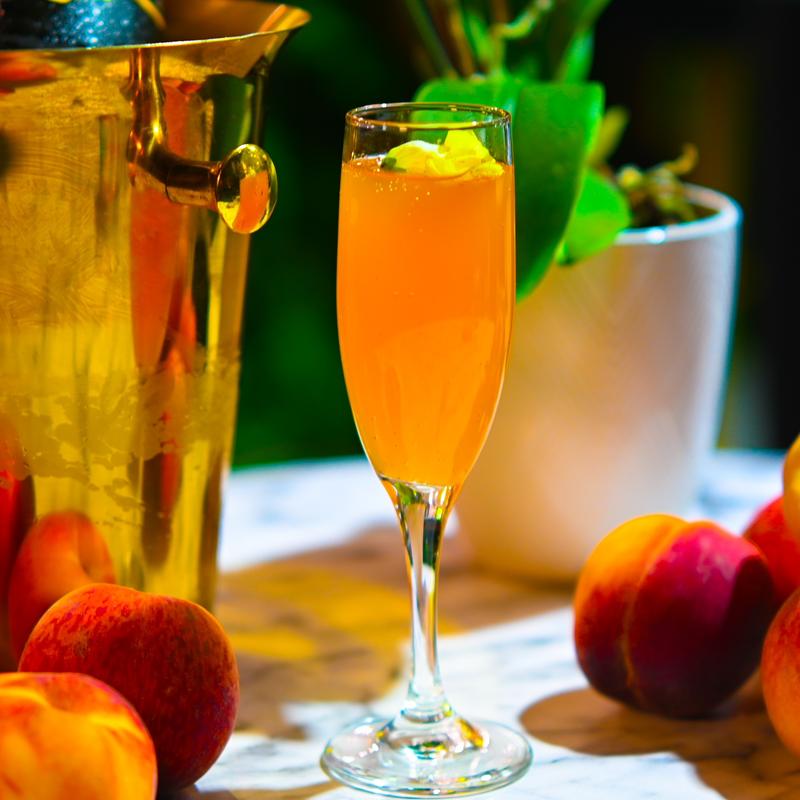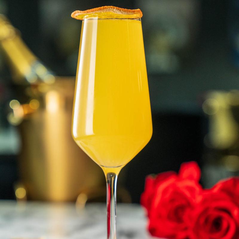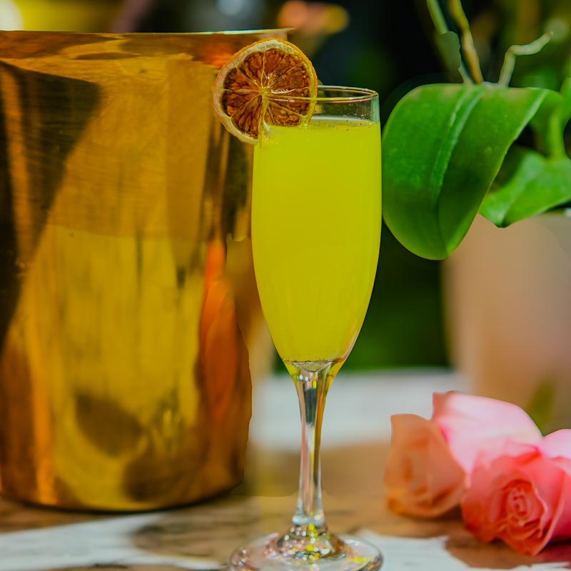 Empress Indigo gin, honey lavender simple syrup, and fresh lime juice topped with prosecco.